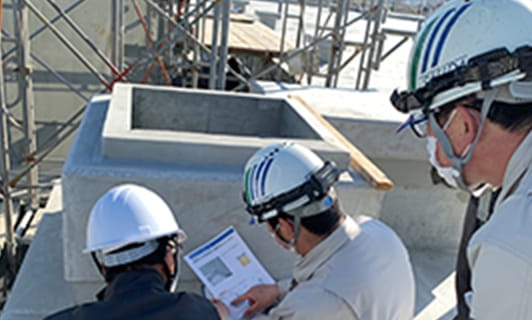 建築工事中は当社の基準がしっかり工事に反映されているか、現地でのチェックを随時実施。