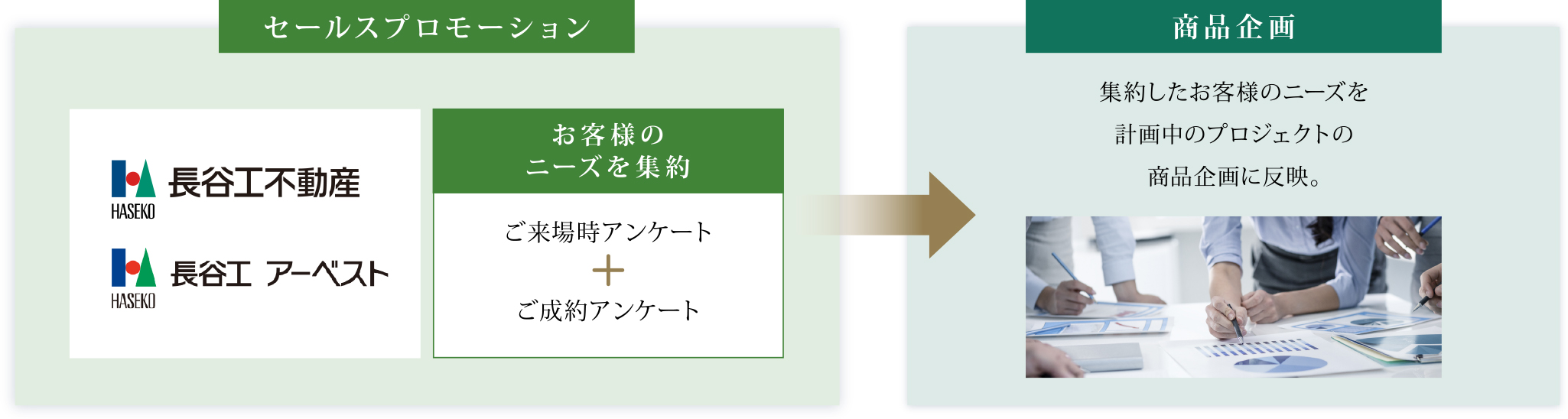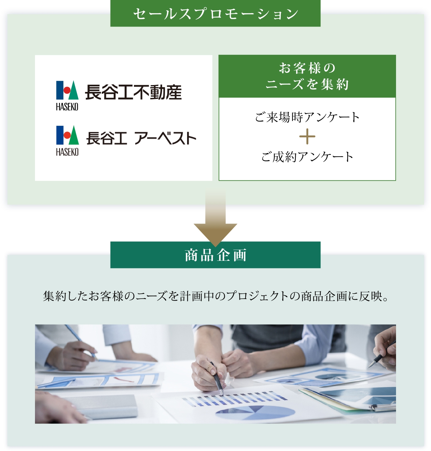 地域特性を把握、それらを基に当社各部署のエキスパートが一堂に会して商品をプランニングします。