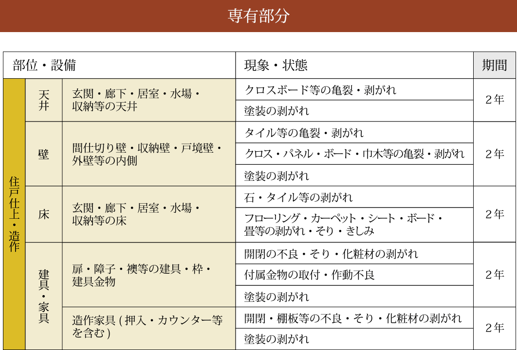 アフターサービスでは、不動産協会の定める規準を参考とした独自のアフターサービス規準に基づいて、お引き渡し後の補修対応を行います。構造耐力上主要な部分及び雨水の侵入を防ぐ部分については、10年間のアフターサービスを提供しています。