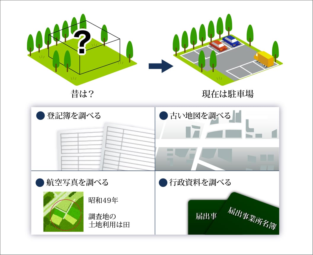 用地取得前の段階から、自治体発表のハザードマップや国会図書館にて過去にその土地に何があったのか、数十年前まで遡った地歴を入念に調査を行います。