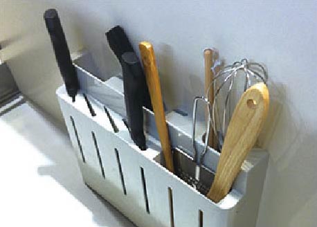 壁面にはマグネット収納棚を2段設置。マグネット式のため、自由に設置場所を変更でき、オプションで追加設置も可能。