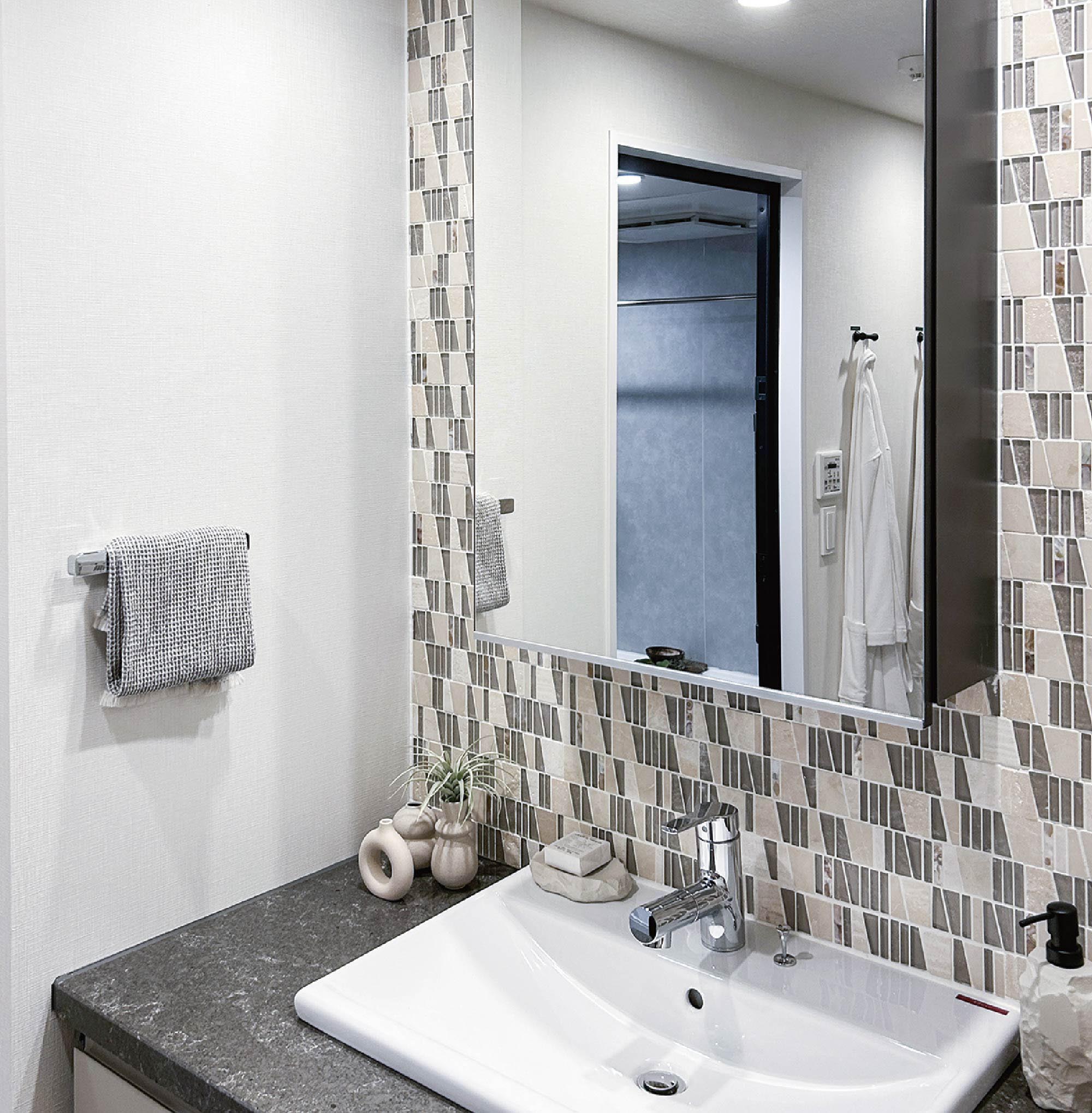 置き型磁器ボウルを採用し、ホテルライクな洗面空間を演出します。