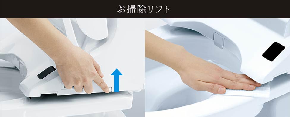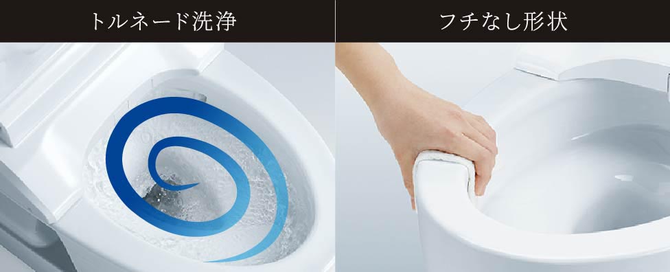 便器の中を少ない水で効率よく洗います。トイレ掃除はサッとひとふきで完了です。