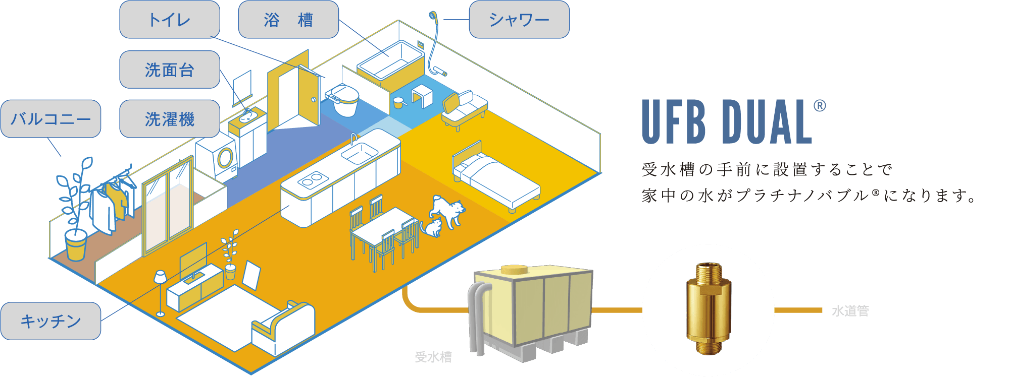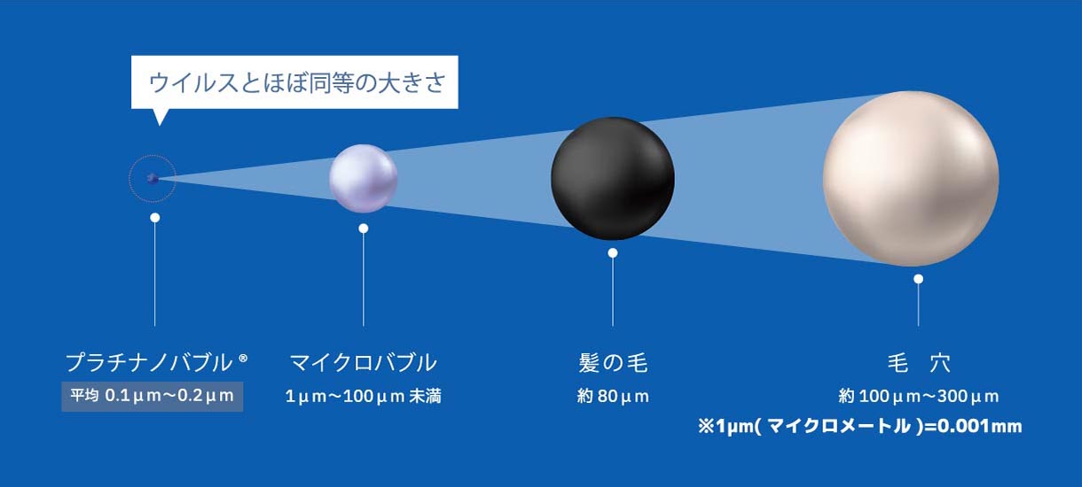 ※プラチナノバブルは株式会社ウォーターデザインワールドが商標登録している名称です。※1㎛以下(=0,001㎜以下)の微細な泡を、一般的にナノバブルまたはウルトラファインバブルと呼称されています。