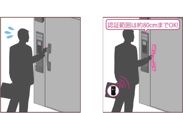 Tebraキーを持ち、リーダのボタンを押すだけで玄関扉の施錠・解錠が可能です。また、Tebraキーの電池切れの場合でもシリンダーカバーを開ければ解錠できるので安心です。