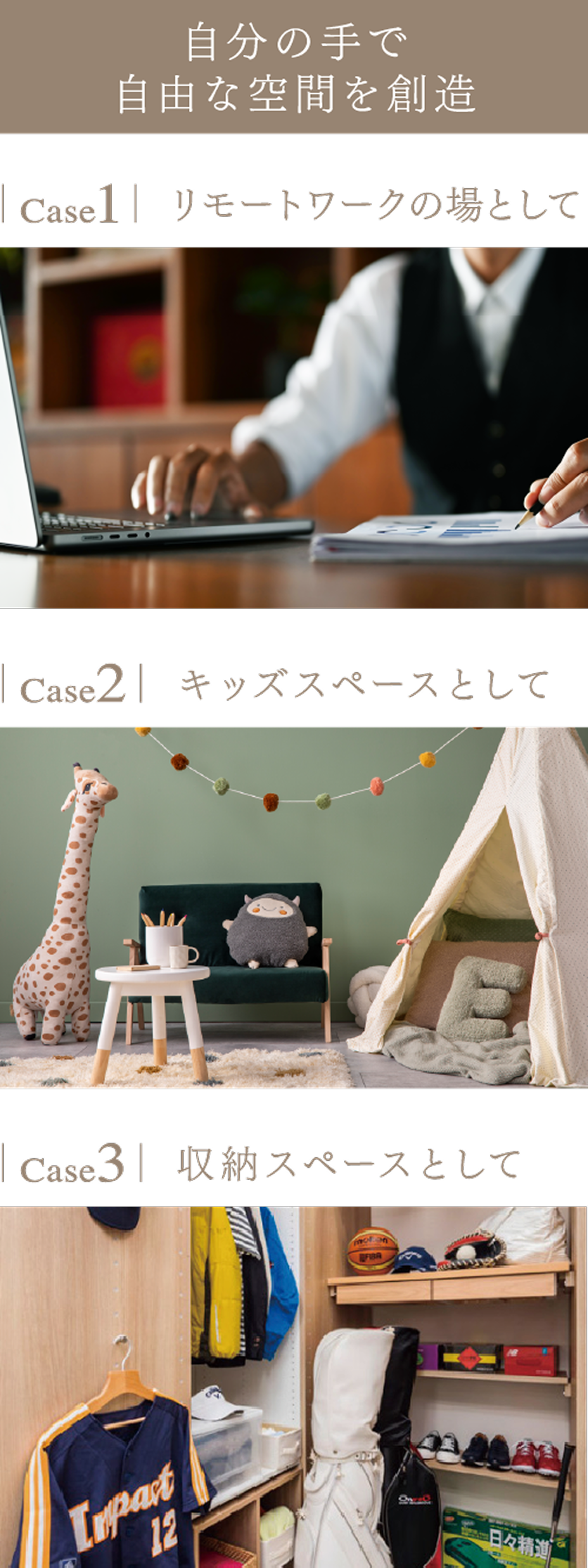 収納をより広く、あるいは居室をお好みに応じた広さに。
