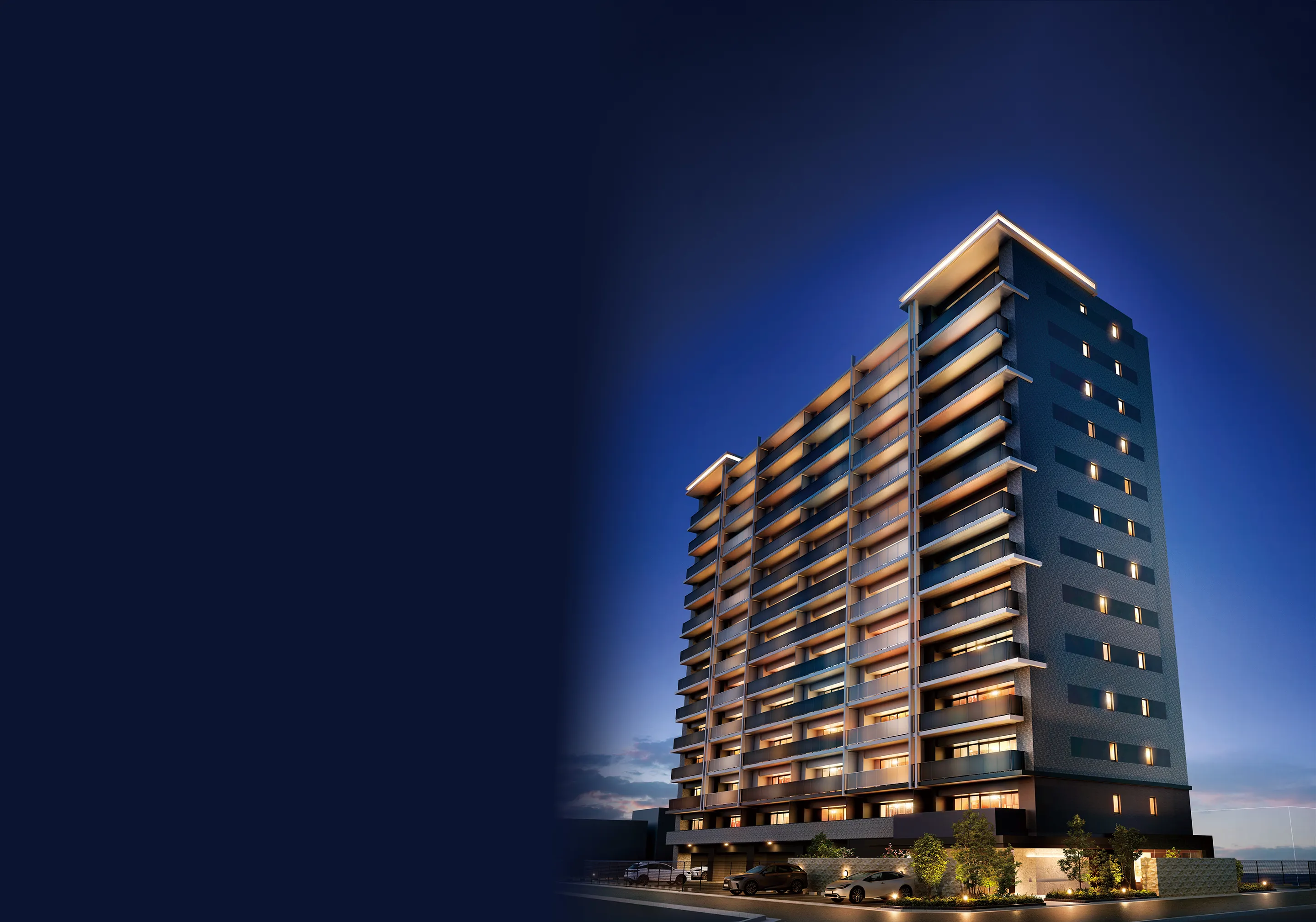- ※掲載の外観完成予想図は計画中の設計図書に基づき描き起こしたもので、官公庁の指導、施工上の都合により建物の形状・色調・植栽などに変更が生じる場合があります。予めご了承ください。