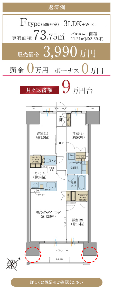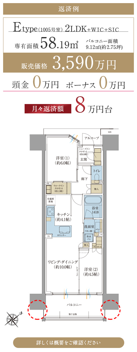 ■Eタイプ(1205号室)・モデルルーム価格/4030万円