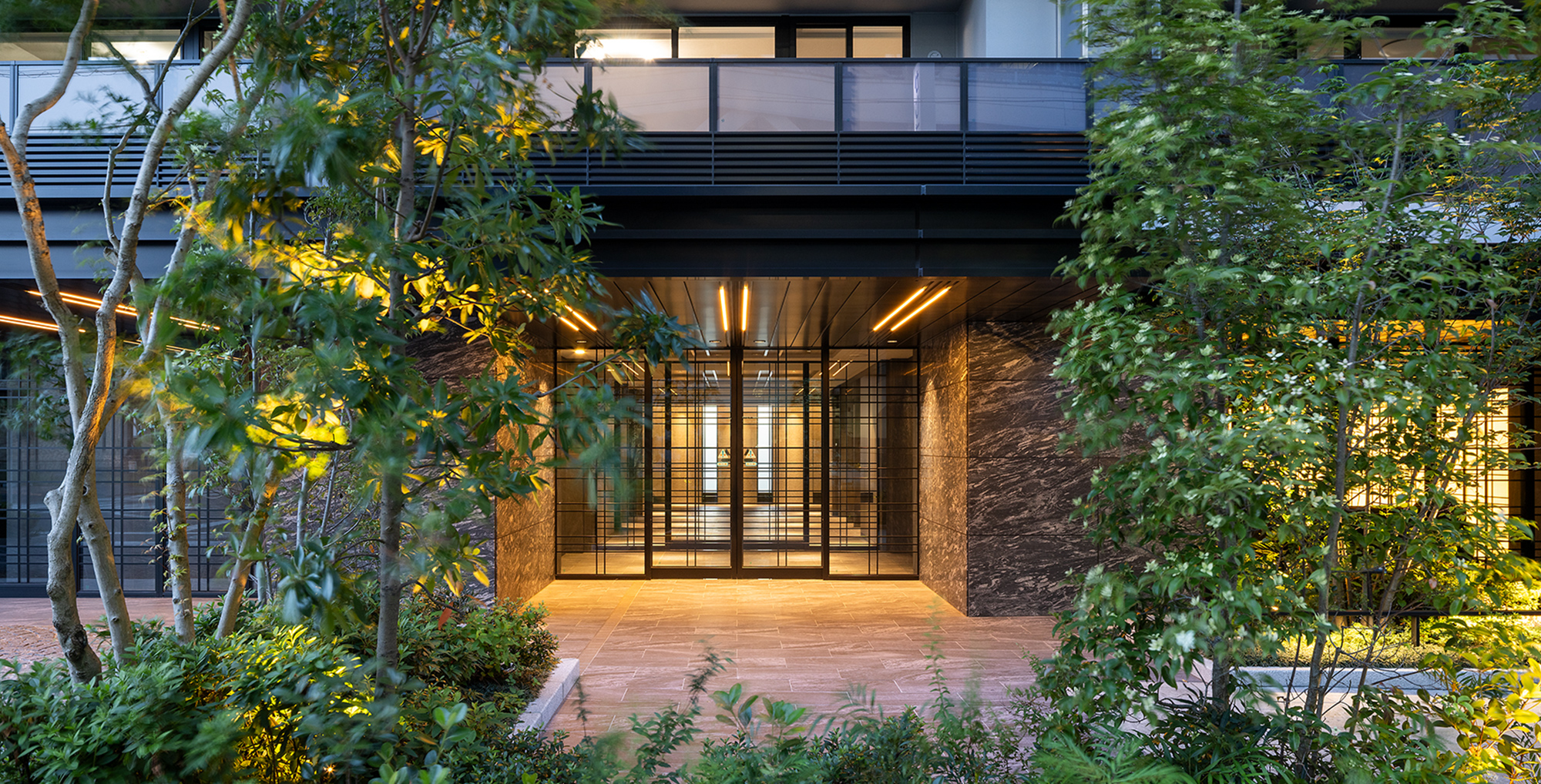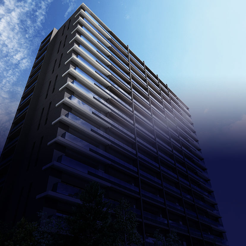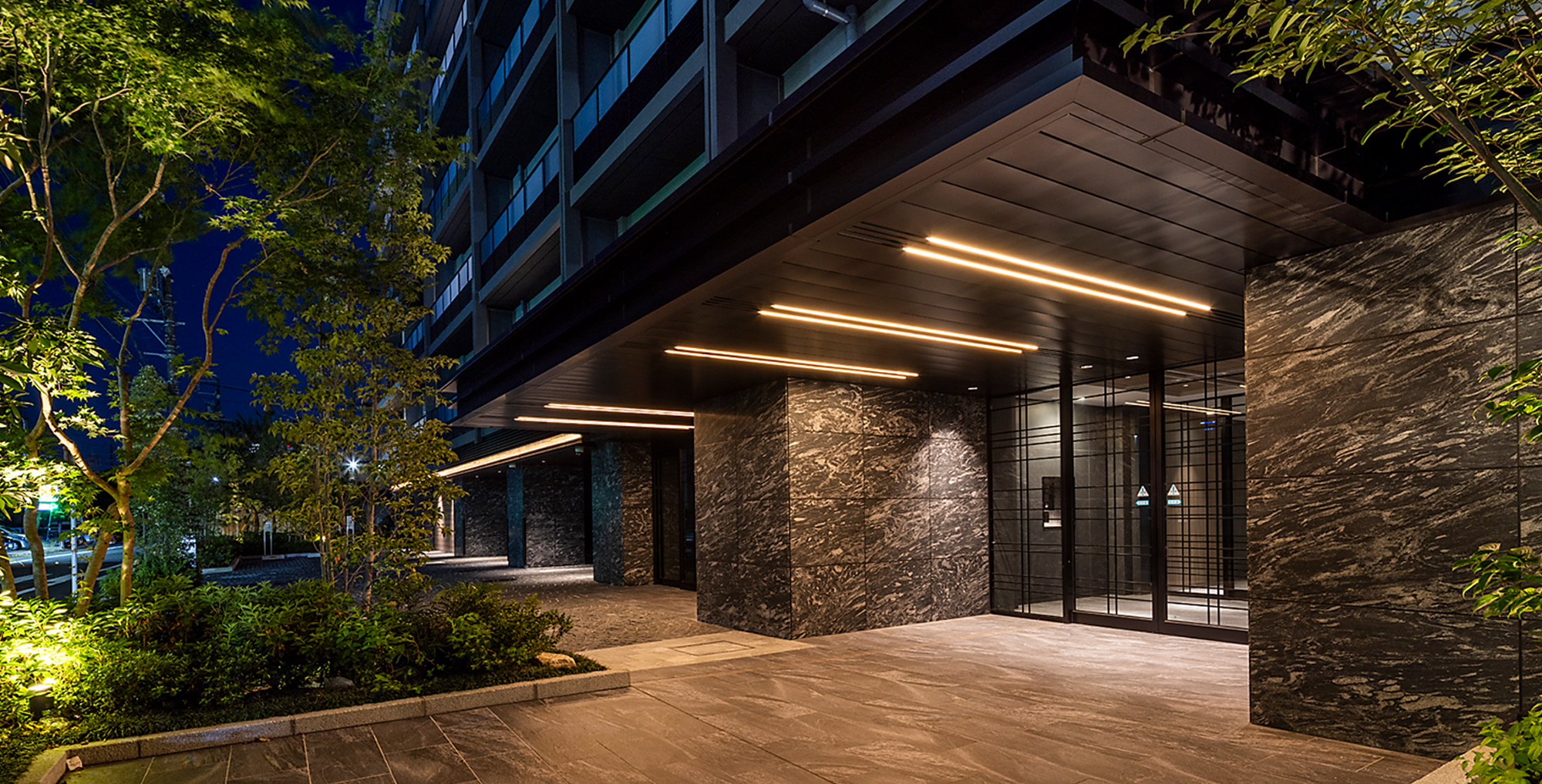 ※掲載の外観完成予想CGは計画中の設計図書に基づき描き起こしたもので、公庁の指導、施工上の都合により建物の形状・色調・植栽などに変更が生じる場合があります。敷地外の一部、建物形状の細部、設備機器等の表現につきましては一部省略しております。予めご了承ください。