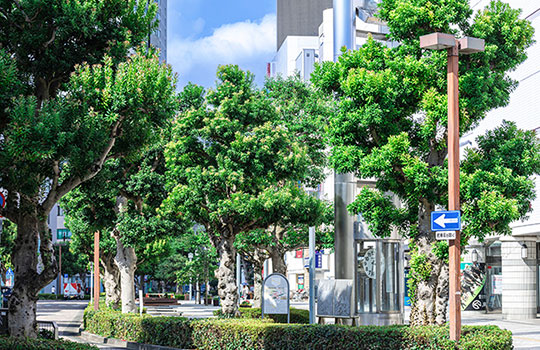 浜松駅へはアクアモールの並木道を通るのがルーティン。