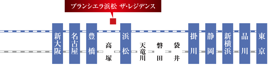 新幹線停車駅のJR「浜松」駅へ、徒歩6分。