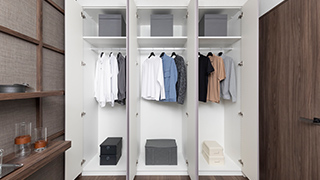 ウォークインクロゼットやシューズインクロゼット、物入、パントリーなど各所に収納を確保。