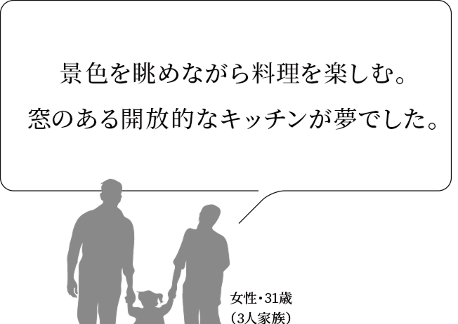 暮らしのなかに、いつでも伸びやかな眺めが感じられるよう、ビューキッチンやビューバスのプランもご用意しています。
