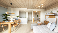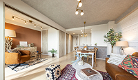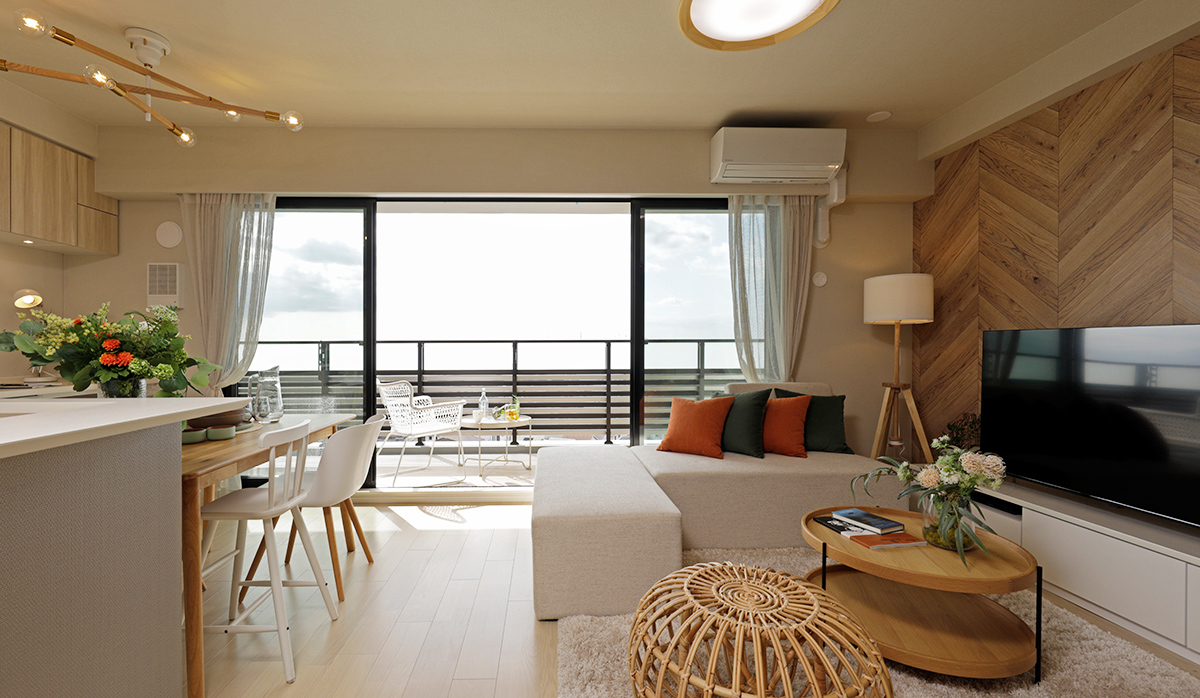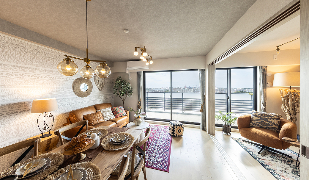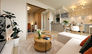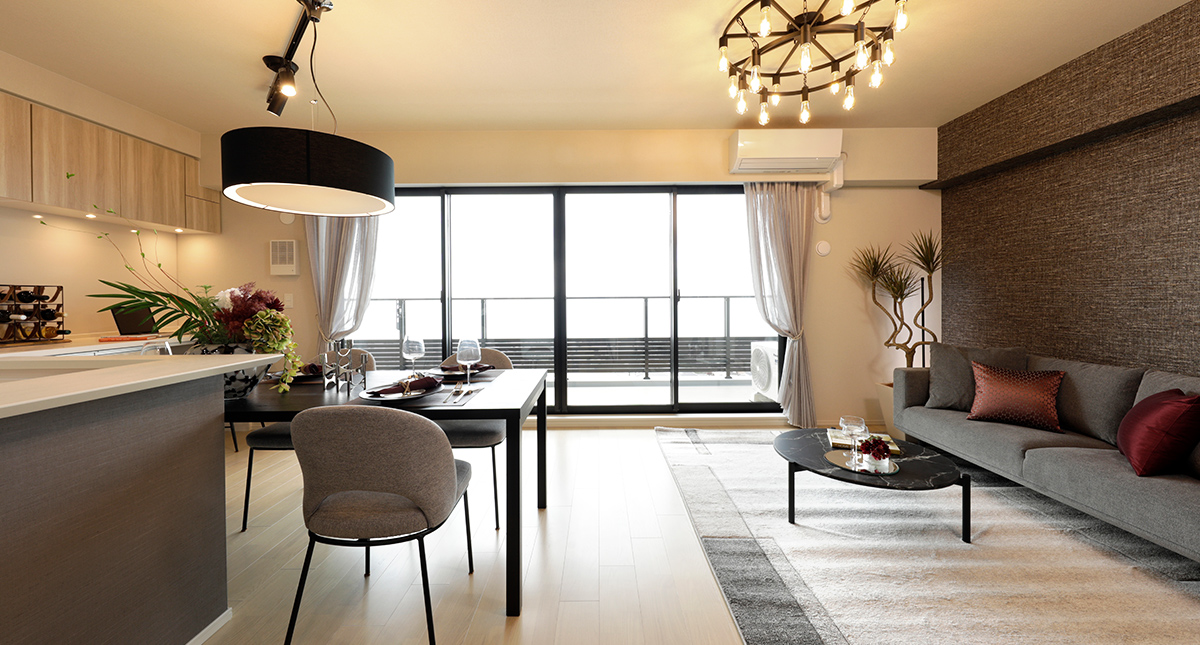 ※掲載の室内写真は、建物内モデルルームD2タイプ(1105号室)、E2タイプ(1108号室)を2025年7月に撮影したもので、一部CG加工を施しています。なお、家具・照明器具・小物等は販売価格に含まれておりません。