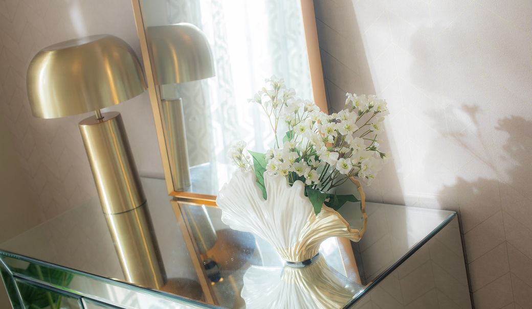 柔らかなアイボリーに、ゴールドの煌めきをアクセントに添えました。