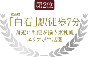 生活利便施設が身近に揃い、日々の暮らしに欠かせないものが完結できる、東札幌エリアが生活圏となることについても大変好評でした。「白石」駅周辺の東光ストアなどのスーパーや、ツルハドラッグなどを身近に利用できる点や、徒歩15分のイオン、徒歩17分のラソラなどが日常使いできる点も高い評価を受け、その他、総合病院から小中学校、区役所に銀行に、バスターミナルと、徒歩圏にありとあらゆる利便施設が集積している点に、多くのお客様からお喜びの声をいただきました。