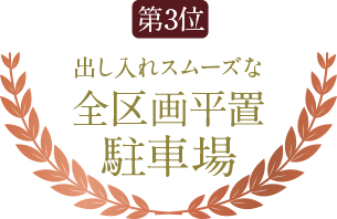 敷地内に55台分を確保した駐車場はすべて平置きタイプを採用。スムーズに出入庫でき、快適なカーライフを送れると大変好評でした。また、敷地内の路面下には、冬場の融雪および凍結防止のために、ロードヒーティングを設置しており、「車のスリップや歩行時の転倒を防ぎ、雪かきの負担も軽減できる」とお喜びの声をいただいております。