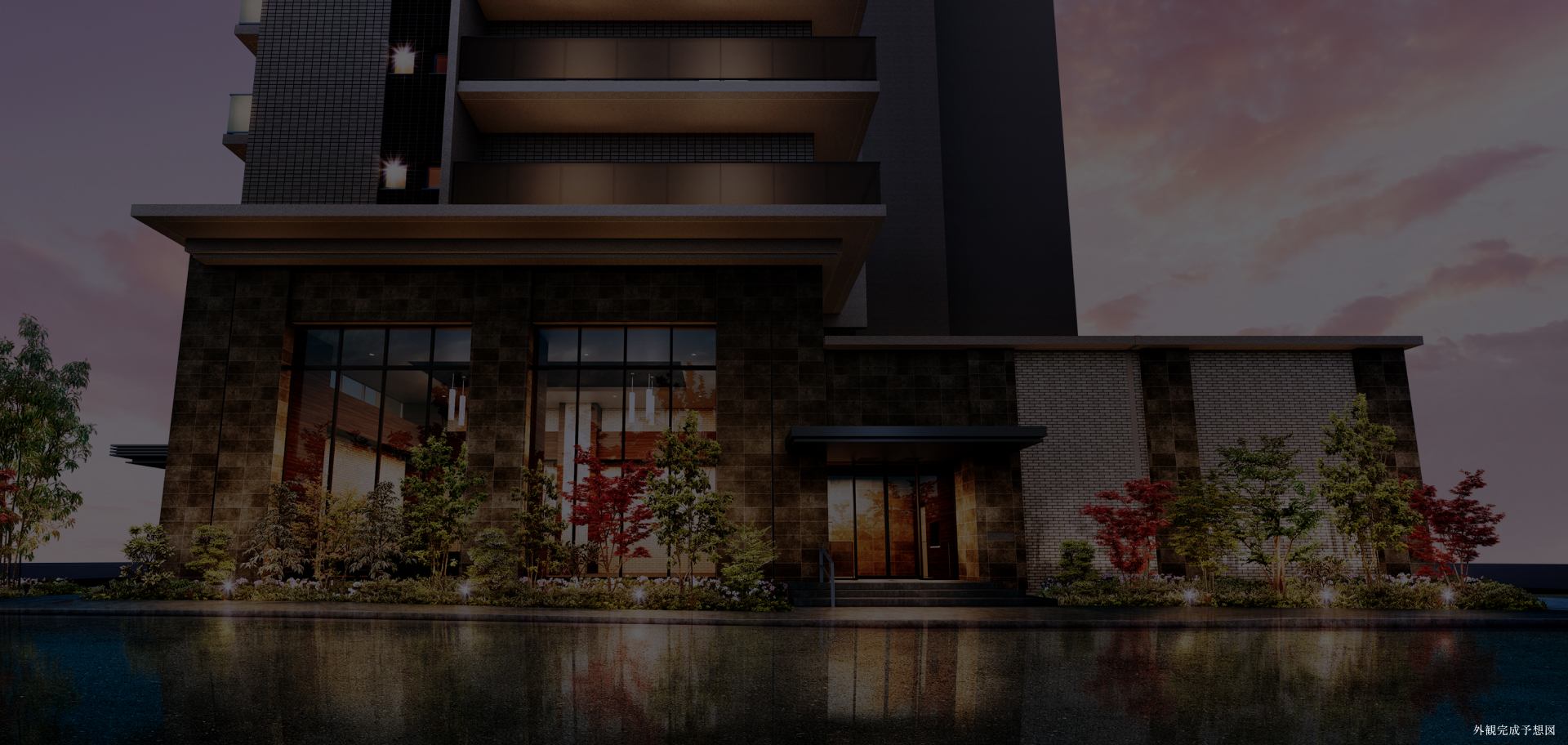 - ※掲載の外観完成予想CGは計画中の設計図書に基づき描き起こしたもので、公庁の指導、施工上の都合により建物の形状・色調・植栽などに変更が生じる場合があります。敷地外の一部、建物形状の細部、設備機器等の表現につきましては一部省略しております。予めご了承ください。