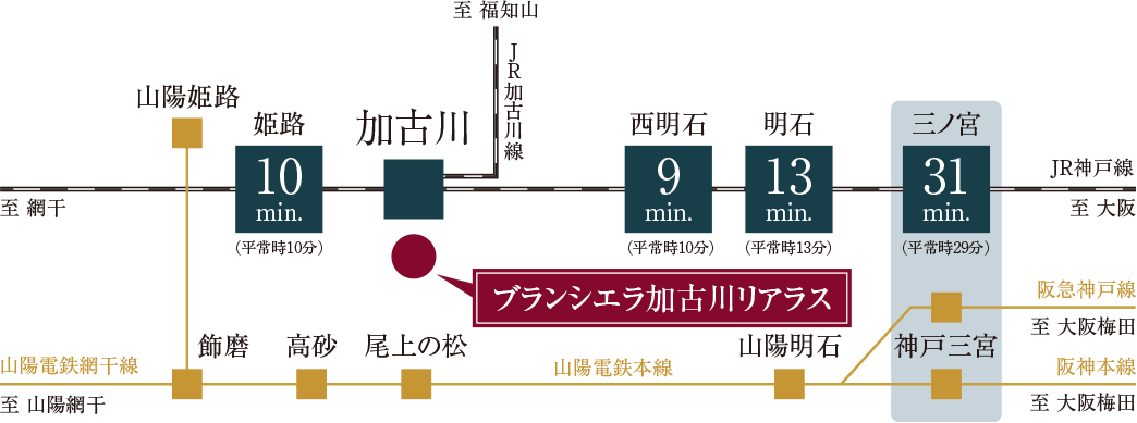 JR神戸線、山陽電鉄本線が利用可能。