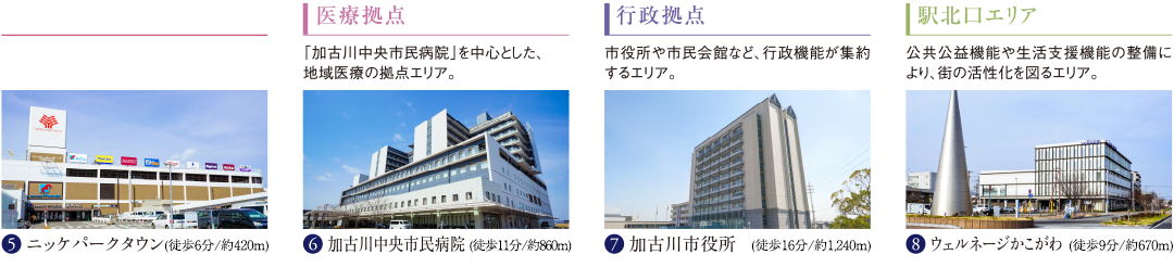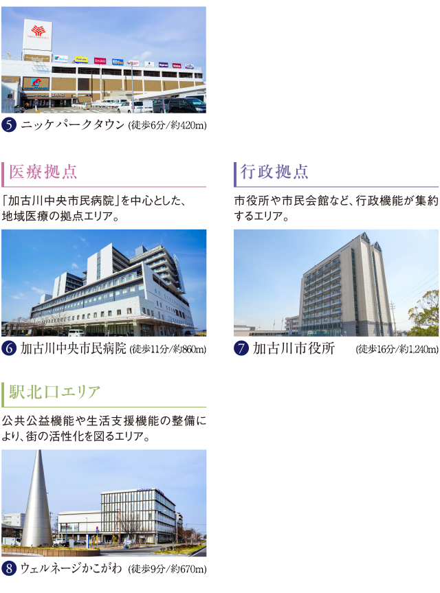 江戸時代の参勤交代の際に、西国街道の宿場町「加古川宿」として栄えた記憶を宿す加古川寺家町。明治初期の加古川駅の開業をはじまりに、駅周辺への商店街や企業の進出が盛んになり、たくさんの人々が暮らす街へと成長してきました。いまでは、生活利便施設も充実し、暮らしのための環境がしっかりと整っています。いままでも、そしてこれからも、家族の未来を美しく育む、加古川の中心地です。