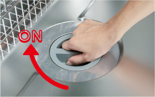 ディスポーザが排水口に直結しているので、スイッチひとつで簡単に排水できます。