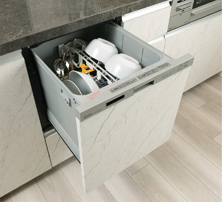 便利な食器洗い乾燥機を標準装備。出し入れ簡単なビルトインの引き出しタイプです。