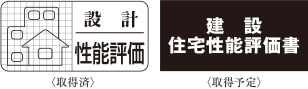 国土交通大臣の登録を受けた第三者機関が、住宅の各性能について公平な立場で客観的に評価・表示。「設計住宅性能評価書」を取得済みで、「建設住宅性能評価書」も竣工時に取得予定です。