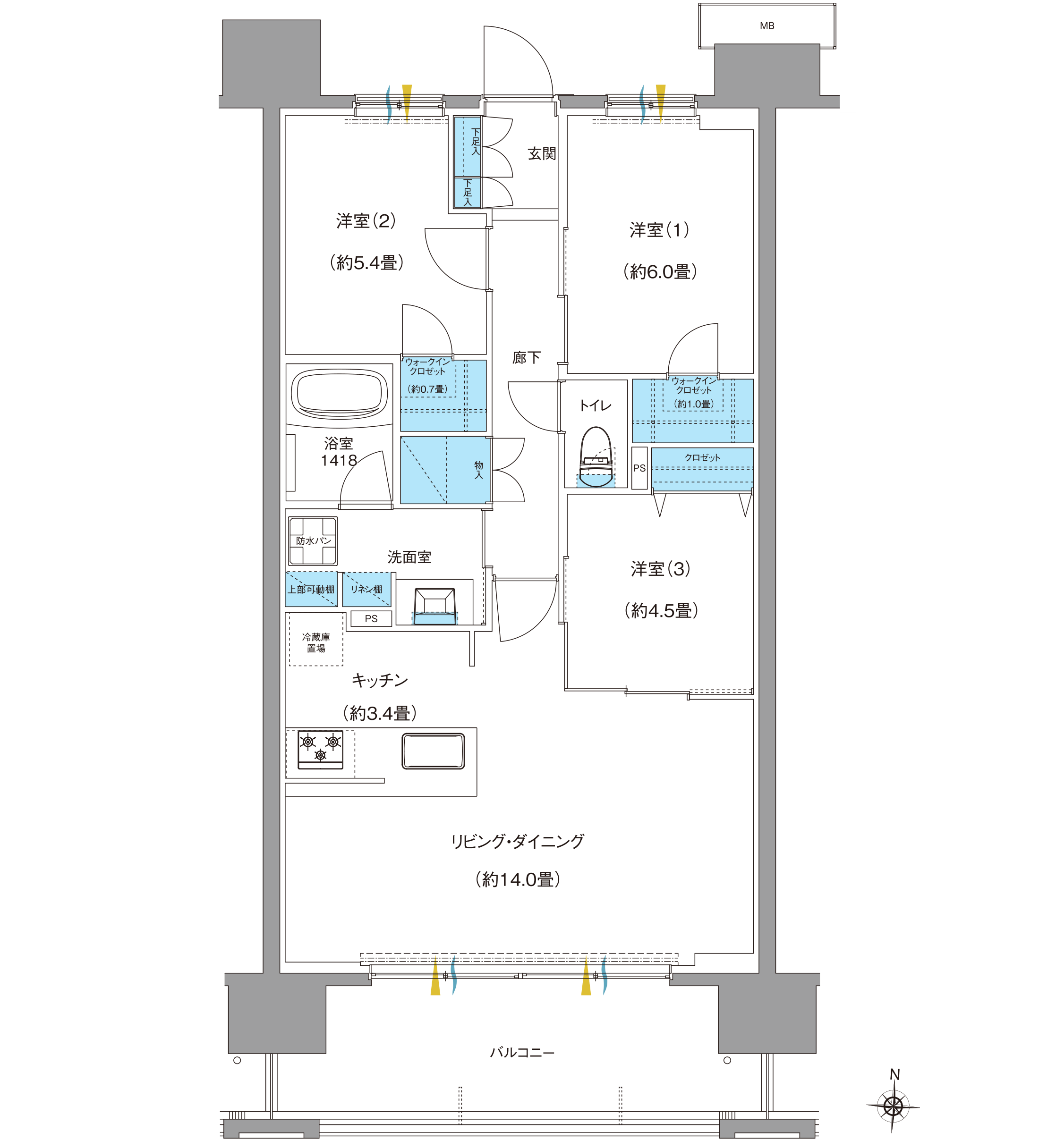 ■ウォークインクロゼットや物入など、収納が豊富な3LDK+WICタイプ。
