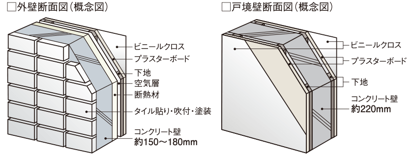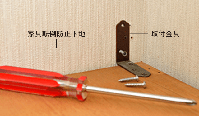 キッチンや居室で家具を置くことが想定される壁面に、家具転倒防止金具を取り付けられる下地を設けています。