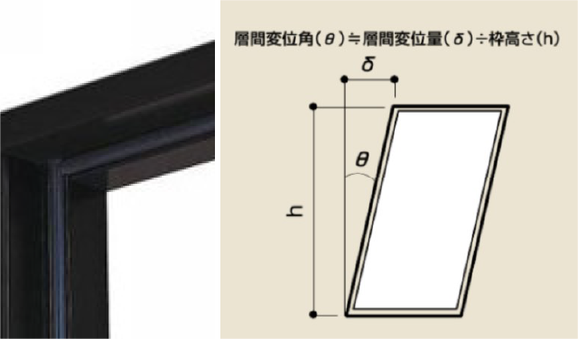 通常よりも付け根部分のクリアランスを広くとり、地震時にドア枠が変形してもドアの開放を容易にします。