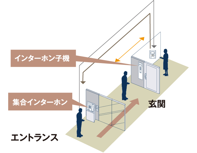 カラーモニター付きインターホンでエントランスの来訪者を画像で確認できる安心のオートロックシステムを採用しています。