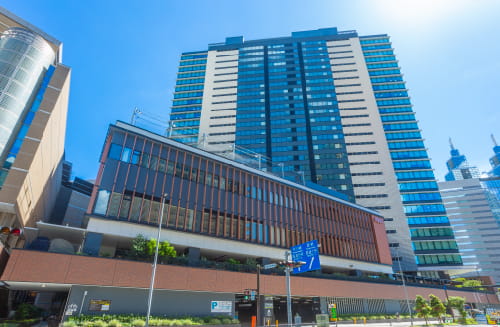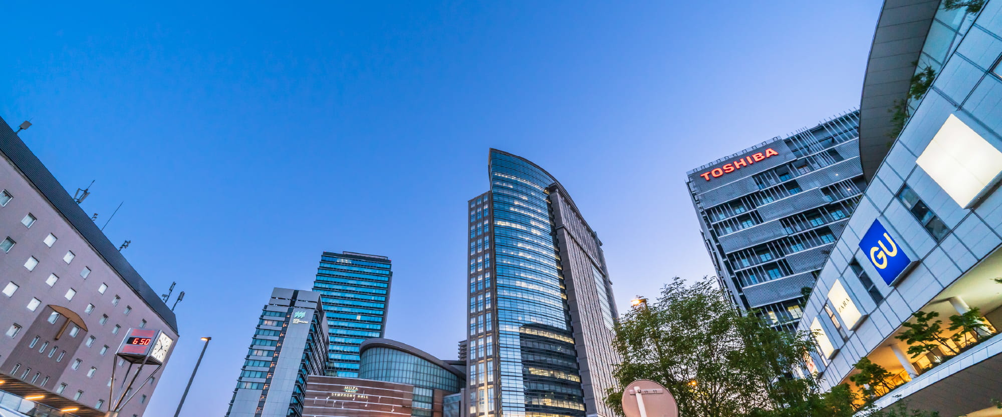 複合型の街づくり。オフィス、商業施設、ホテルが複合的に開発された「川崎」駅西口の街づくり。多摩川の三角州(デルタ)を思わせる三角形の街区のもと、多様なヒト・モノ・コトが出会う価値を創造しています。