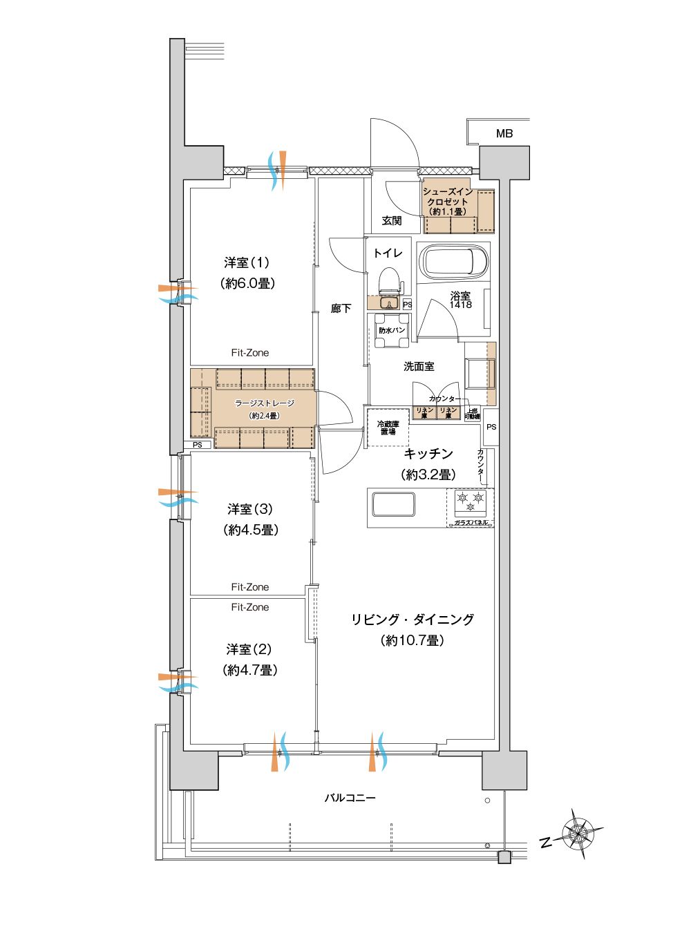 - ◎自由なスペースが魅力的な3つのFit-Zone