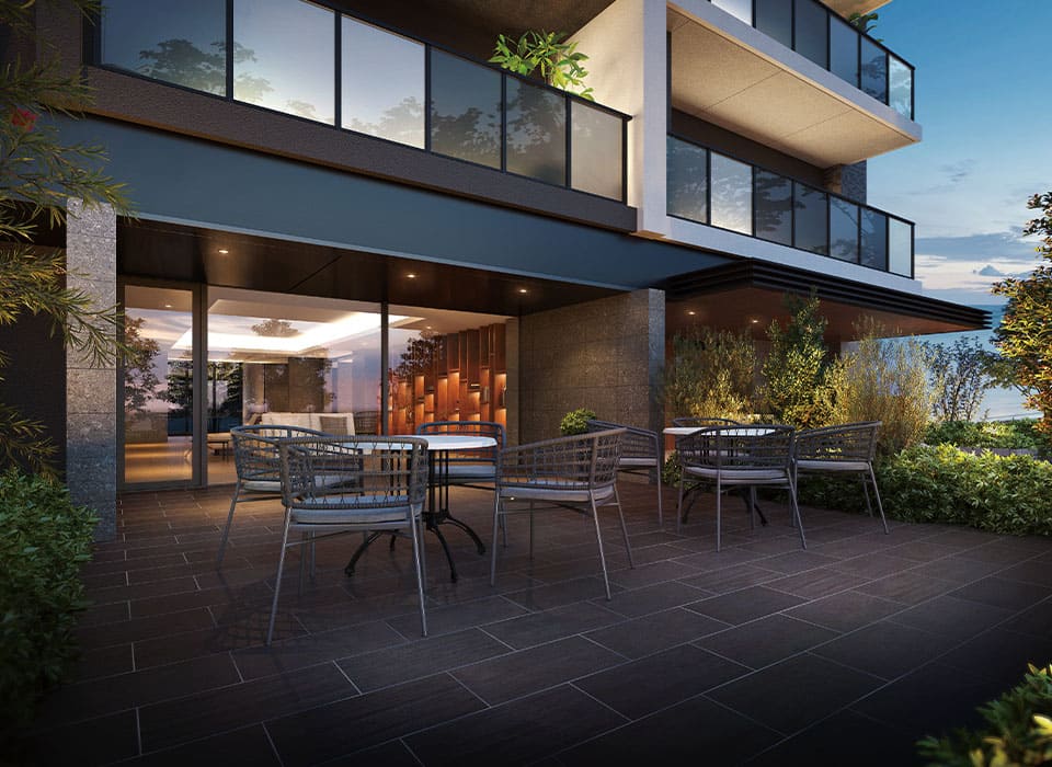 ラウンジとつながるテラスは、緑と光に包まれた憩いの場。会話や休息の時を伸びやかに楽しめます。