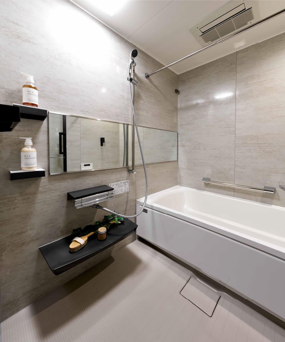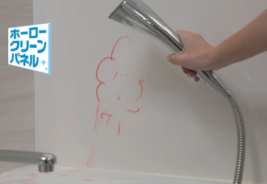 お手入れは入浴後にシャワーとスポンジで洗い流すだけでOK。傷がつきにくいので、長年使ってもお手入れのしやすさは変わりません。