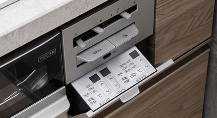 コンロ、グリルにタイマーを搭載。設定時間で消火するから、焼きすぎ、煮すぎを防ぎます。