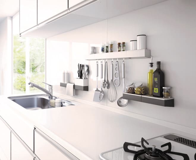 インテリア性に優れた人造大理石カウンターです。美しさが長持ちし、お手入れも簡単です。