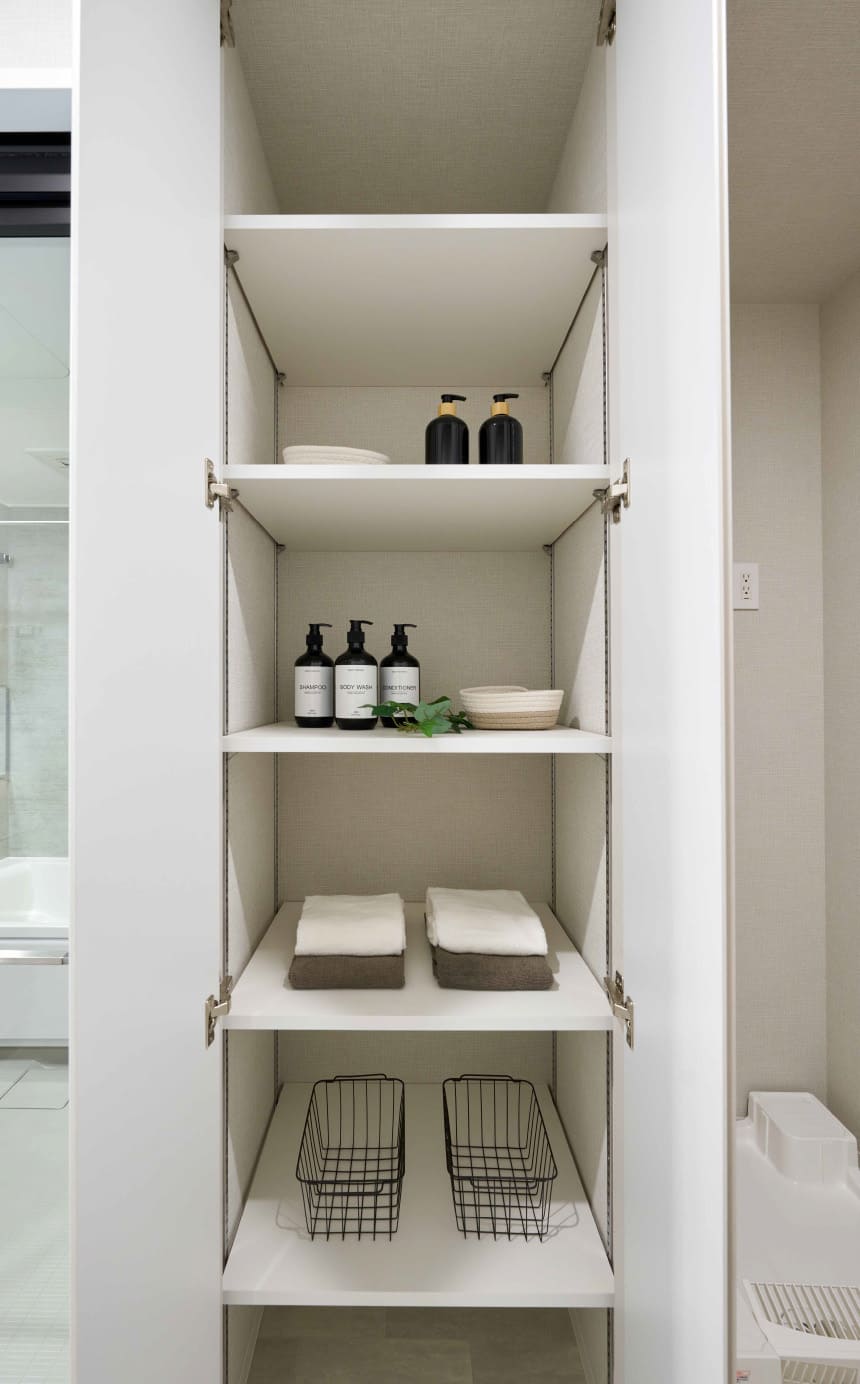 タオルなどをたっぷりと収納でき、洗面室をすっきりさせます。
