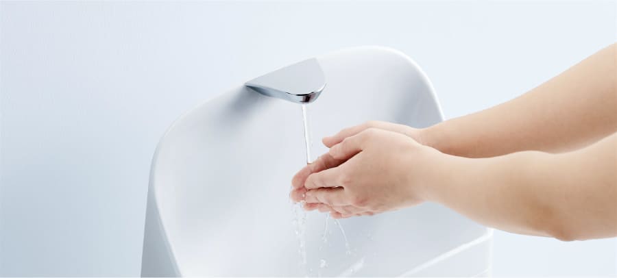 大人から子どもまで、しっかり手が洗える高さに設計。水はねもしにくく、いつでも気持ちよく洗えます。(一部タイプを除く)