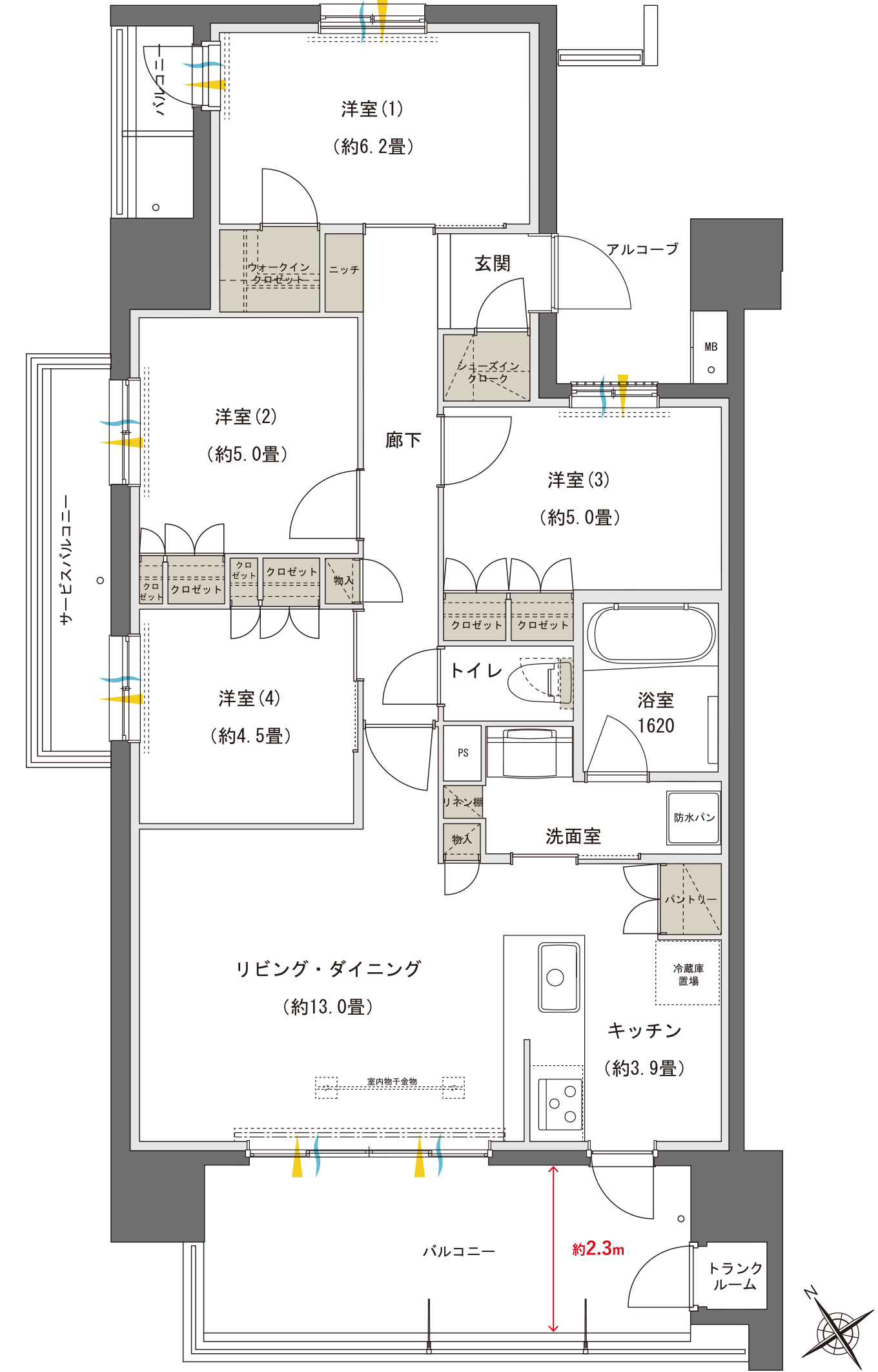 広めの浴室や独立性の高い主寝室、豊富な収納など快適設計を追求したゆとりの4LDK。