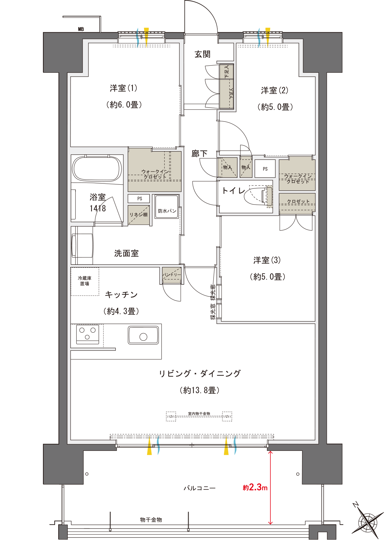 2つのウォークインクロゼットやリネン棚、パントリーなど豊富な収納をプラン。