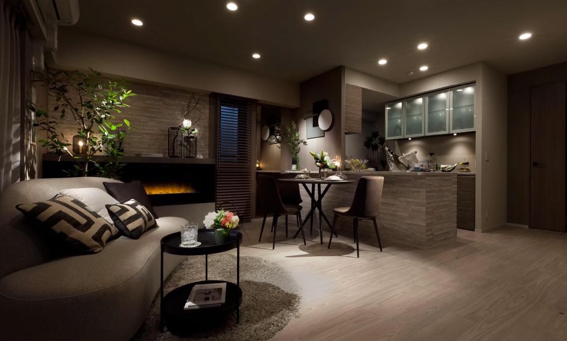 フチなしで美しさと機能性を兼ね備えたお手入れしやすい仕様。光沢仕上げの天板が高級感を演出します。