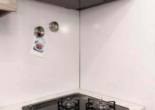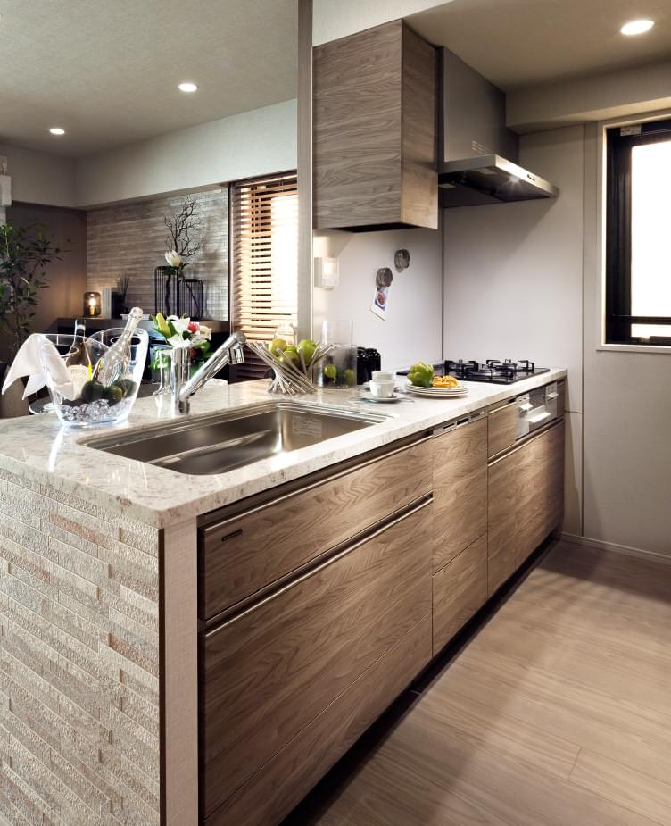 高級感のある人造大理石カウンタートップ。汚れやキズがつきにくく、美しさが長持ちします。