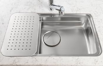 シンクの内側にプレートを設置出来る静音シンク。作業スペースを広げつつシンク内での作業ができるので衛生的に使用できます。