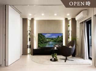 リビング・ダイニングと洋室との間に可動間仕切りのウォールドアを採用。開ければ両室を一体利用でき、閉じれば洋室をワークスペースや趣味の部屋として活用できます。