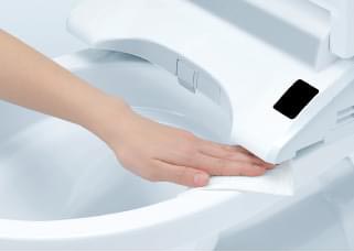 ワンプッシュでウォシュレット前方が持ち上がるので、汚れがたまりやすい便器とのすき間もラクにお掃除できます。