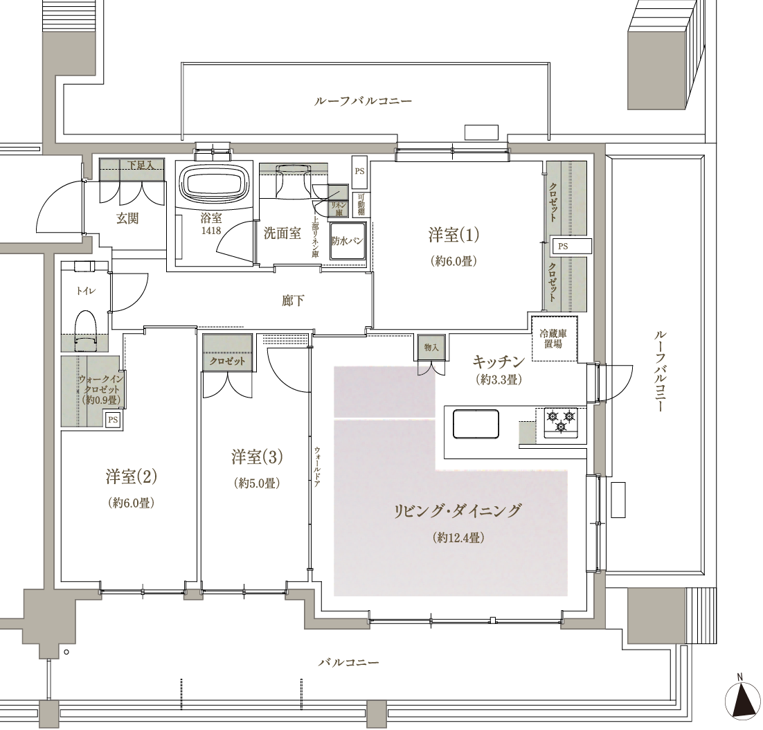 ルーフバルコニー面積/24.24㎡(約7.33坪)