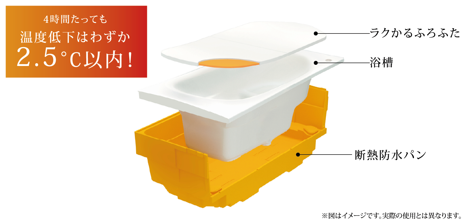 すぐれた断熱構造浴槽を断熱材で包み込んだ魔法びんのような構造でお湯の温かさを保ちます。