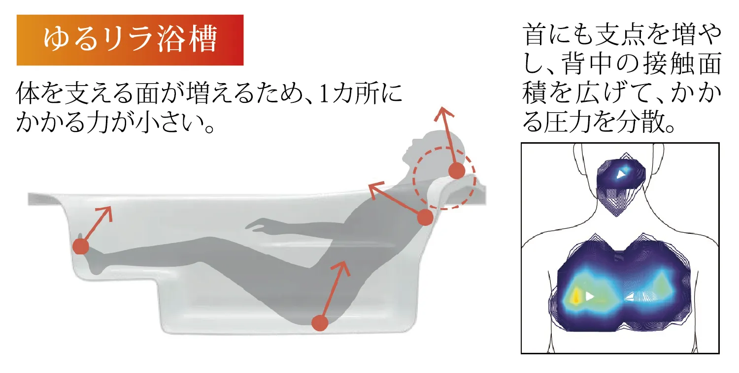 頭と首をしっかり支え、身体にかかる圧力を分散。入る人をやさしく包み込みます。