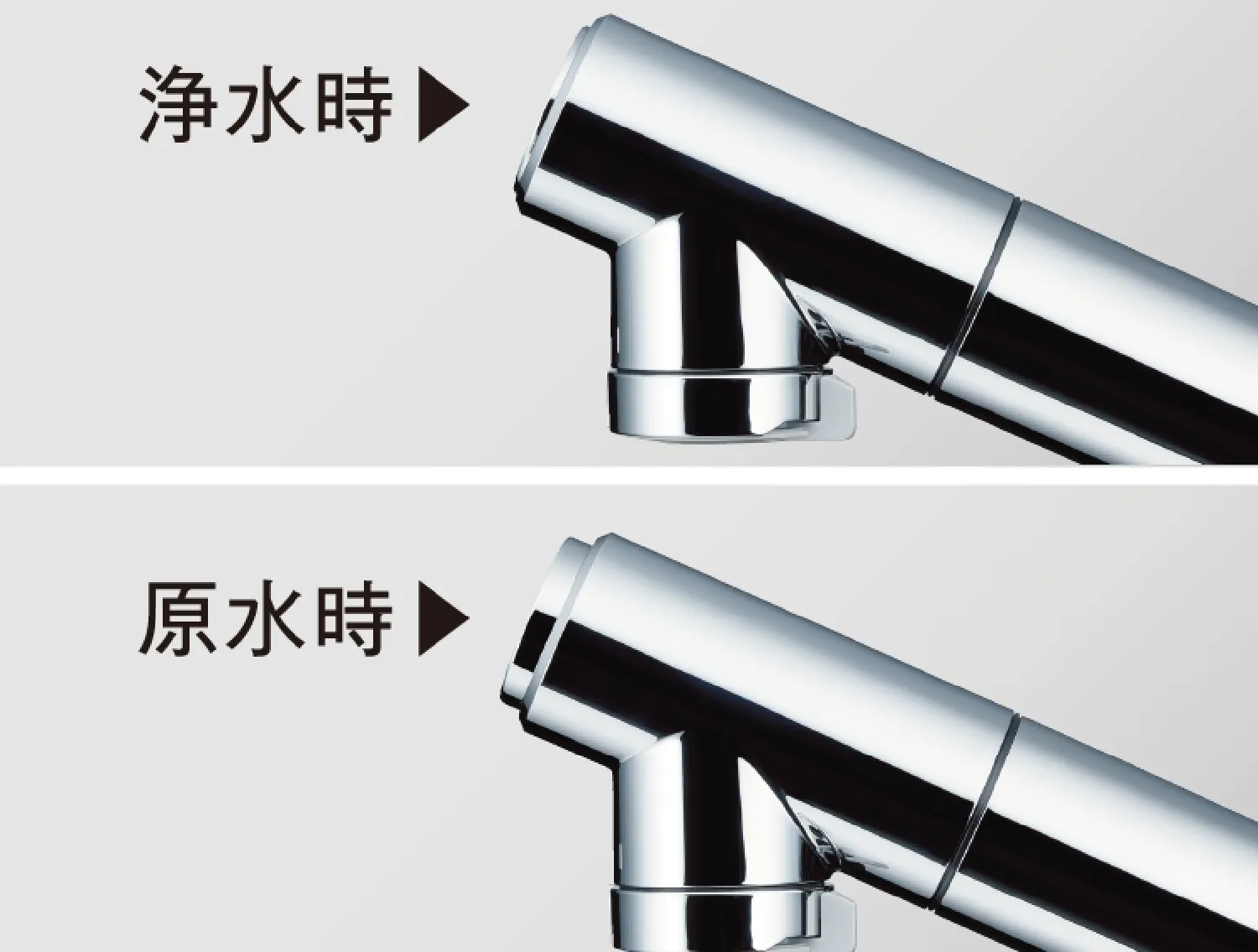蛇口先端のボタンを押すだけ、簡単に浄水、原水が切り替わります。